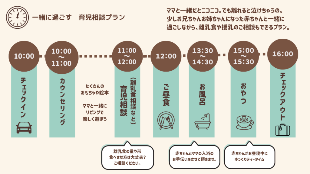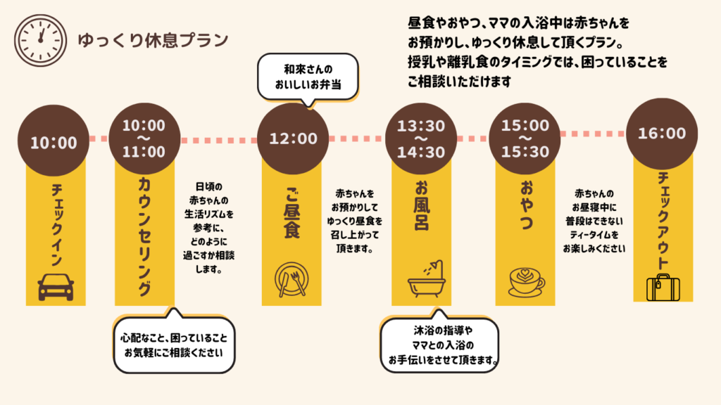 「少し休みたい」「誰かに話を聞いてほしい」「赤ちゃんと安心して過ごしたい」