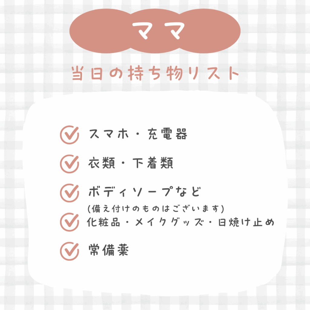 当日の持ち物リスト